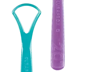 features two blades – one smooth, one serrated – which work together to thoroughly remove the bacteria that build up on the tongue.