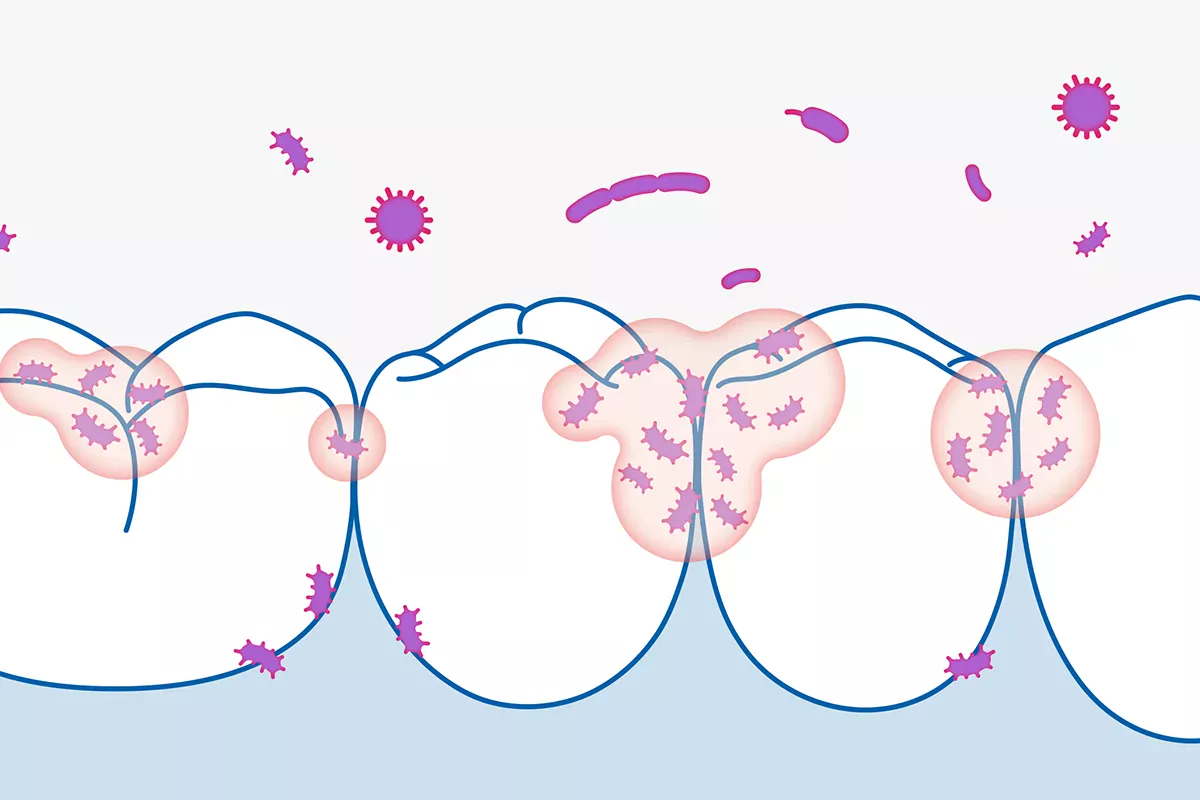 Bacteria within the plaque are the main culprits causing caries. These bacteria derive their energy from the carbohydrates found in our food. And they have a preference for readily fermentable sugars, which they convert into acids that erode the tooth enamel through demineralisation. This makes the enamel porous and thus more vulnerable to microorganisms that can infiltrate the tooth and lead to decay.