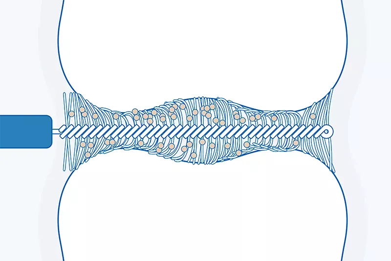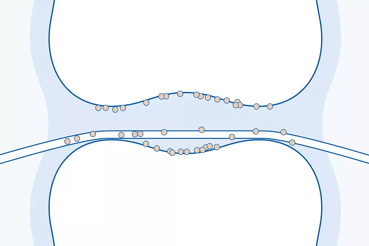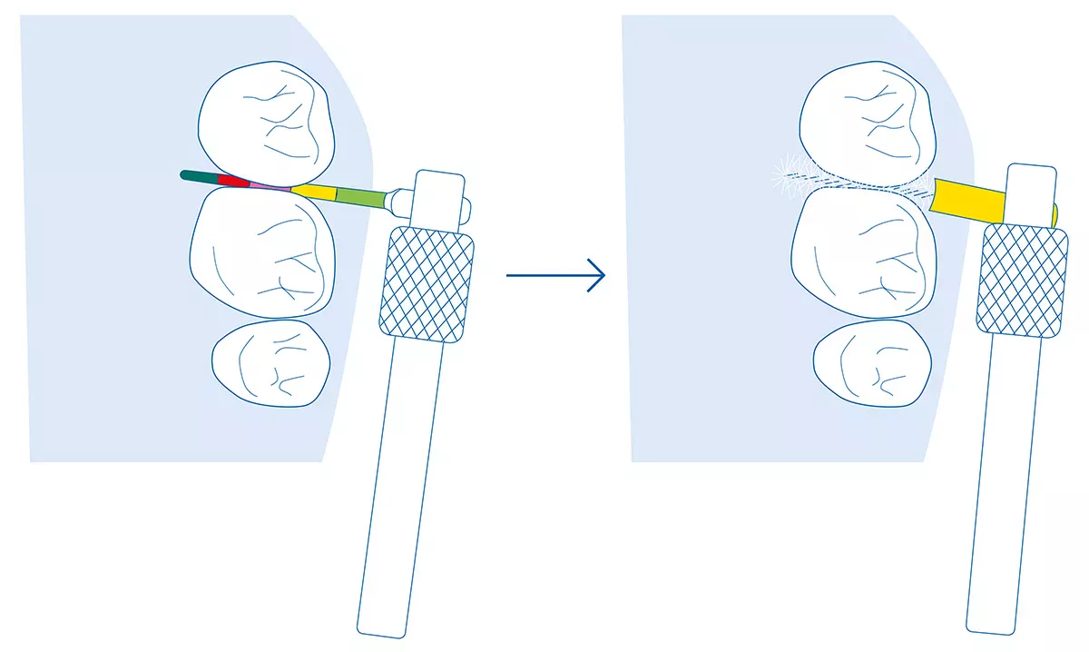 The spaces between your teeth are usually quite narrow. Adjacent teeth come into contact with each other, creating spaces where tiny food particles can become trapped – often without us even noticing. If you fail to clean the interdental spaces correctly, these particles remain stuck in between your teeth and can turn into plaque. This, in turn, triggers a cataclysmic chain reaction: As over time, plaque develops into dental decay.
