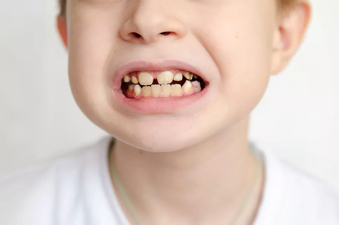 Enamel hypoplasia or enamel hypoplasia is the underdevelopment of tooth enamel. This defect occurs during tooth development in childhood. It is characterised by the fact that the milk teeth of affected children appear very small. This gives the impression that they are very far apart. In addition, the teeth are often an unusual white or brown colour. The danger of enamel hypoplasia is that it significantly increases the risk of tooth decay.