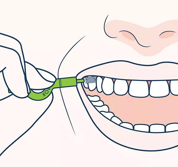 - Ask your dental professional about the right interdental brush for you. It’s important to follow your dentist’s recommendation on which size interdental brushes to use. If a brush is too small for the space, it won’t do the job. If it’s too big, it won’t fit in and you could hurt your gums.