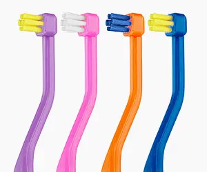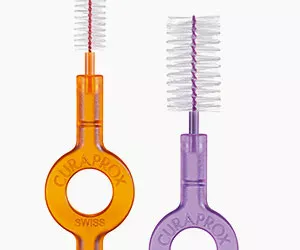 - The fine, long bristles of the Curaprox CPS soft implant brush gently clean those spaces.