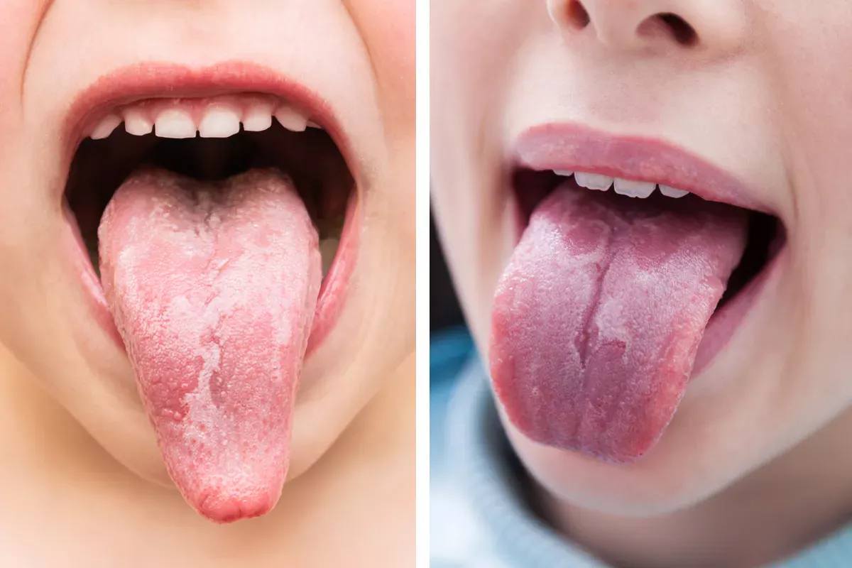 - Scarlet fever (red patches on the tongue and a sore throat)